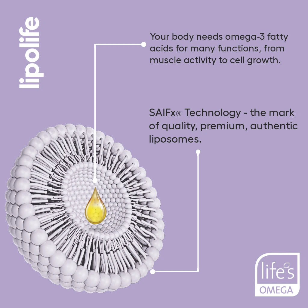 lipolife® liposomal omega-3 is ideal for anyone seeking targeted support for heart health, brain function and balanced inflammation. With superior delivery and pharmaceutical-grade formulation, it’s a powerful option for those looking to optimise long-term wellness and cellular health with the confidence of proven absorption.