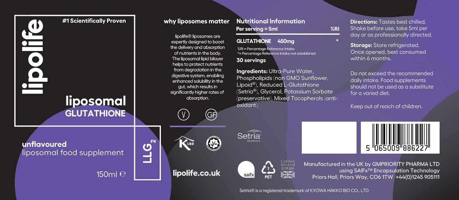 lipolife® offers a high-potency, 100% vegan formula made with the purest ingredients, free from gluten, soy and GMOs. Manufactured to pharmaceutical-grade standards in the UK, it provides a convenient liquid format that makes daily supplementation simple and effective. Unlike many other products, lipolife® is developed using cutting-edge science and incorporates clinically researched ingredients such as Setria® glutathione.