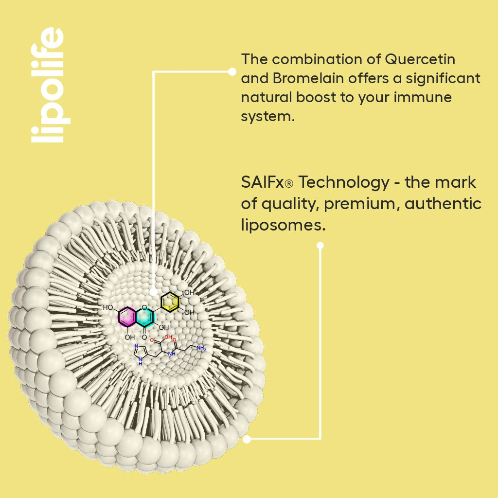 lipolife® offer a scientifically advanced, liposomal formulation combining Quercetin and Bromelain to support immune function, manage inflammation and promote respiratory and cardiovascular health.