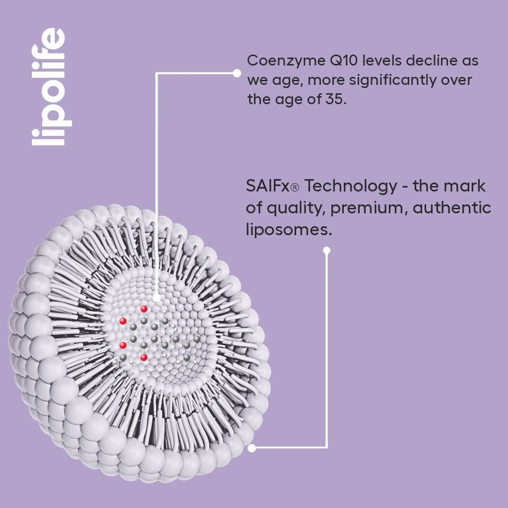 lipolife® overcomes this with advanced liposomal delivery technology, encapsulating CoQ10 in protective lipid vesicles called liposomes. These liposomes shield the active nutrient from degradation in the stomach and facilitate direct absorption into the bloodstream and into cells.